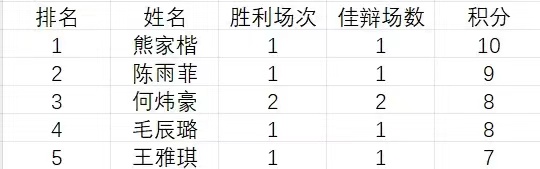 最佳辩手排行榜